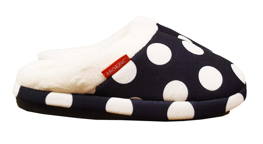 ARCHLINE Orthotic Slippers Slip On Arch Scuffs Pain Relief Moccasins - Polka Dots - EU 42
