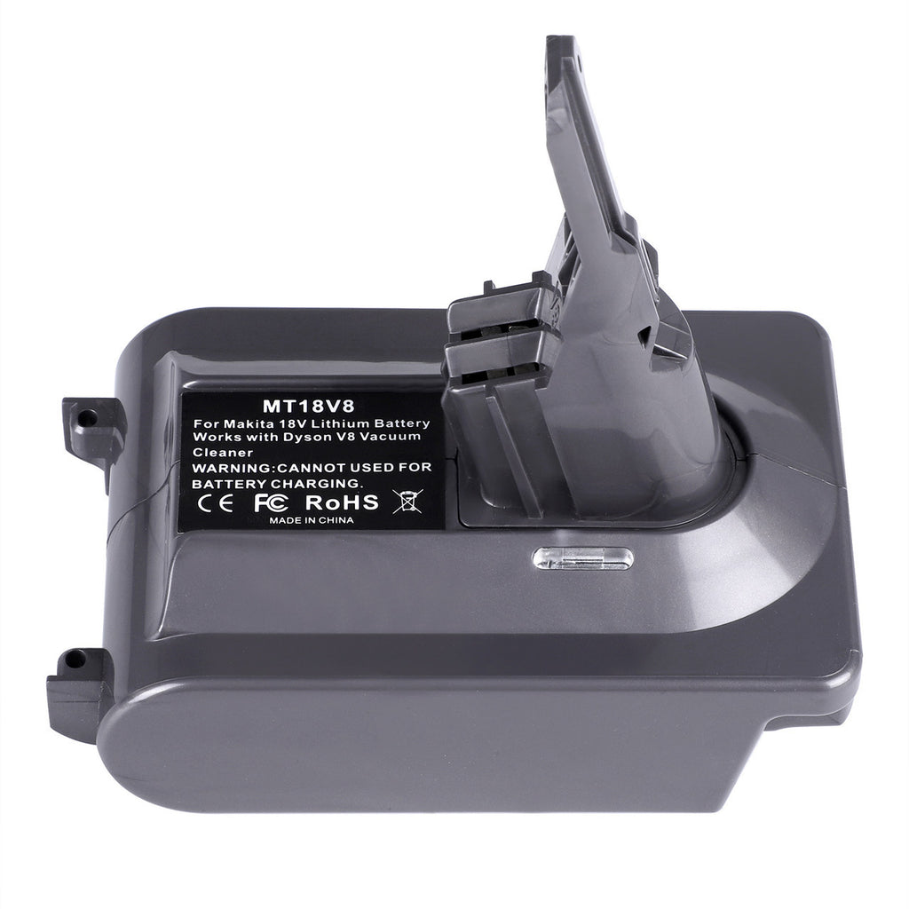 This adapter converts the below listed Makita MT series batteries to Dyson V7 or V8 batteries