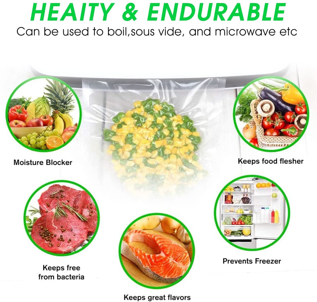 Protect Food from Bacteria & Freezer Burn-Vacuum sealers protect food by preventing the growth of bacteria and freezer burn. By the air/oxygen comes in contact with food, develop Bacteria, Mold & freezer burn. Our sealing bags does not ruin the taste and texture of your food. YOUR TASTE BUDS & HEALTH ARE VITAL