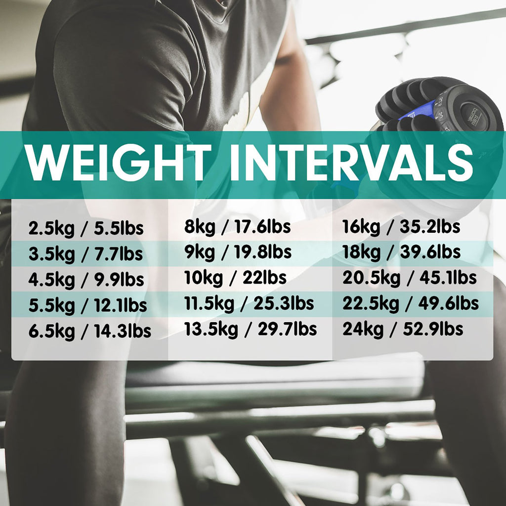 Powertrain 24KG Adjustable Home Gym Dumbbell - Blue
