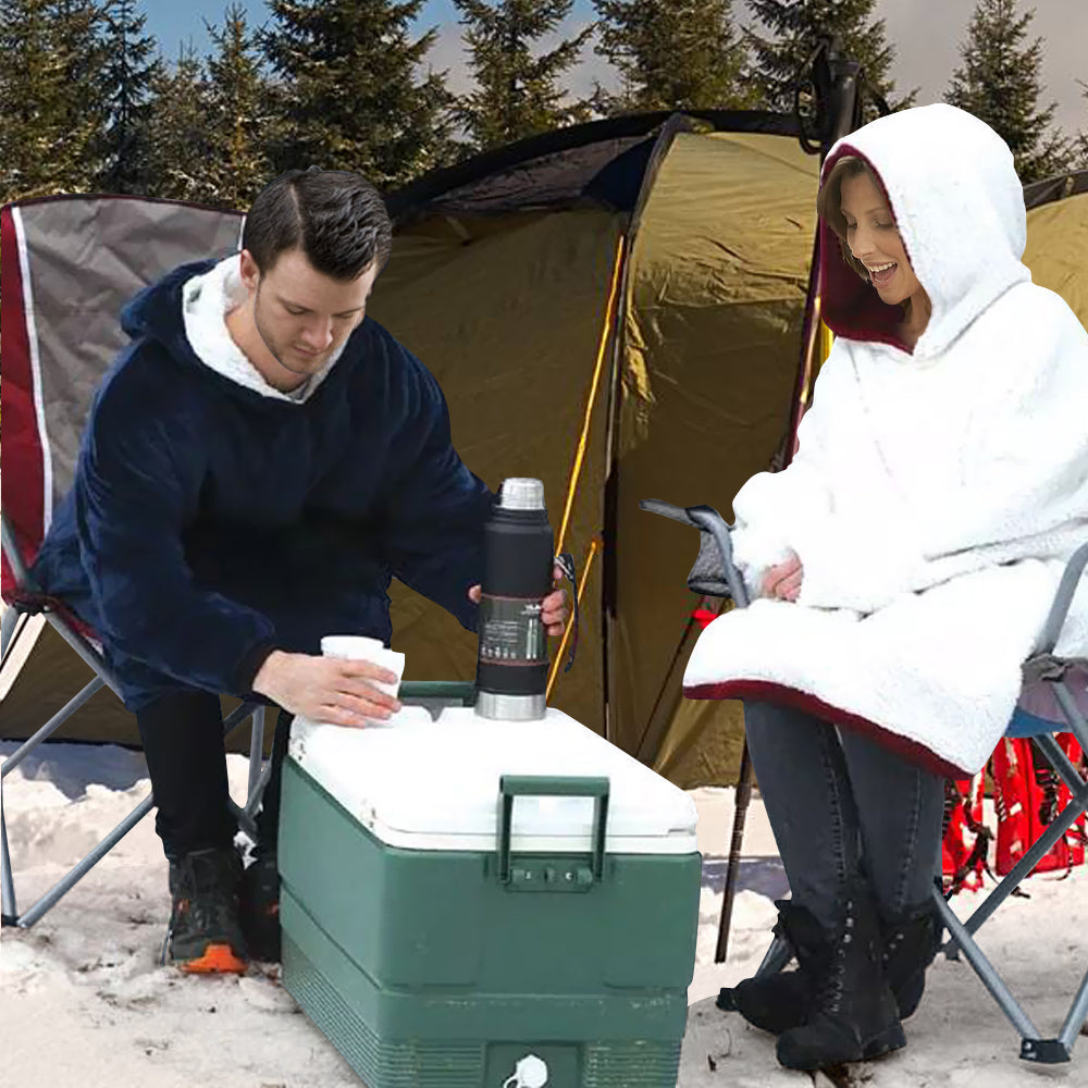 It is made of extra-soft flannel and the inside is made of premium fleece material. The large Hoodies keeps you warm always. Features an oversized hood to keep your head warm and comfortable, and a large, wide pocket to keep your needs wherever you are. It is suitable for families, offices, dormitories, shopping errands, trailing, camping and more. You can carry it anywhere you want! It is even reversible!! Just slipping it, the chill disappeared! Children will love it too!