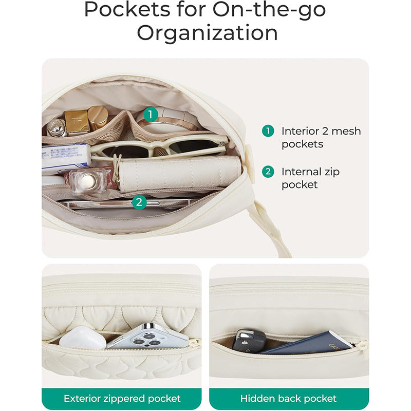 Beige Stylish Quilted Belt Bag - Lightweight Nylon Crossbody Fanny Pack