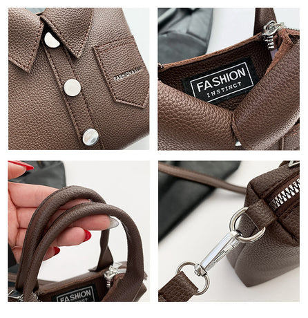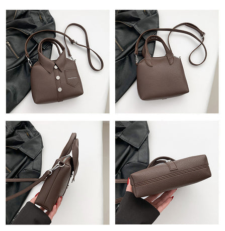 Discover the perfect blend of style and functionality with this trendy shirt-inspired PU shoulder bag. Its unique clothing-inspired design makes it a standout piece for any wardrobe. Compact yet spacious, this bag is ideal for daily use or special outings. The detachable shoulder strap adds versatility, allowing you to wear it as a shoulder bag, crossbody bag, or simply carry it by hand.