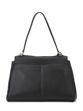 Elegant Black Leather Handbag with Gold Accents - Versatile Shoulder and Hand Carry