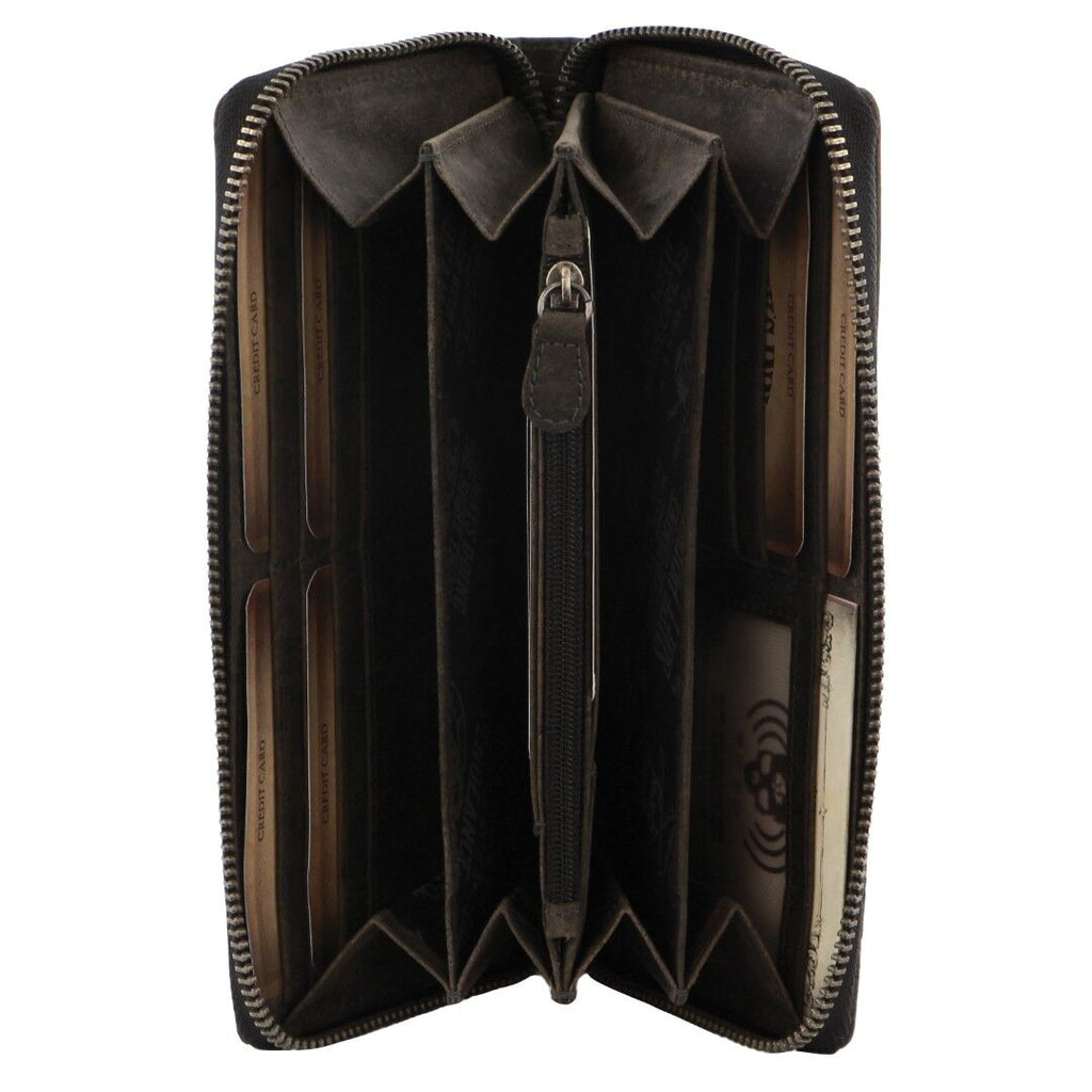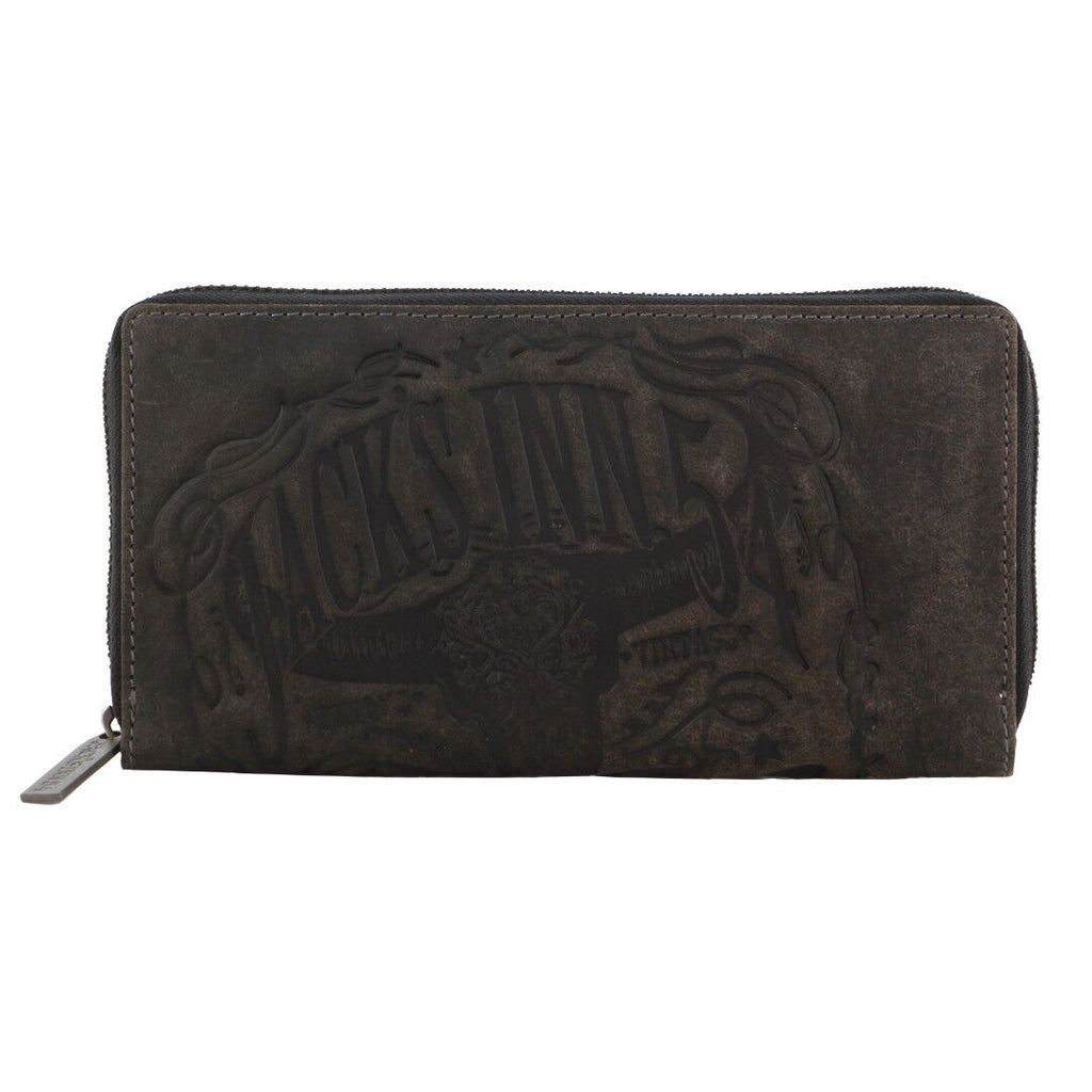 Jack's Inn Liquor Ladies Crazy Horse Leather Wallet Black Bourbon Womens Gift Set