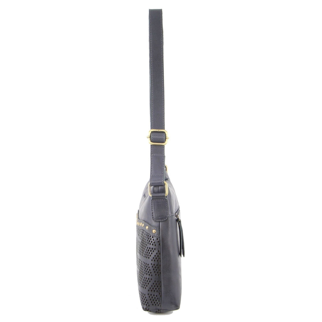 Pierre Cardin Womens Leather Perforated Cross-Body Bag with stud Detailing - Teal
