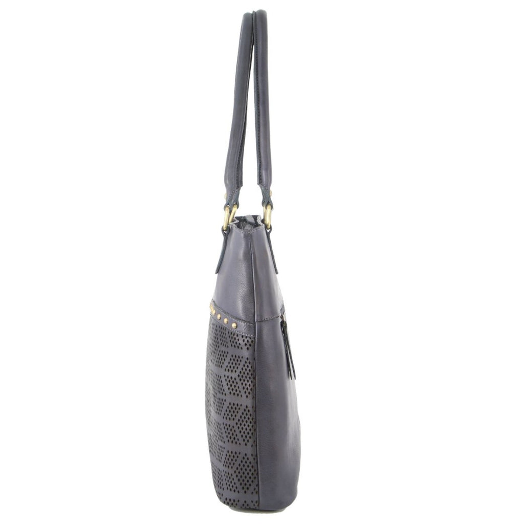 Pierre Cardin Womens Leather Perforated Shoulder Bag with stud Detailing - Teal