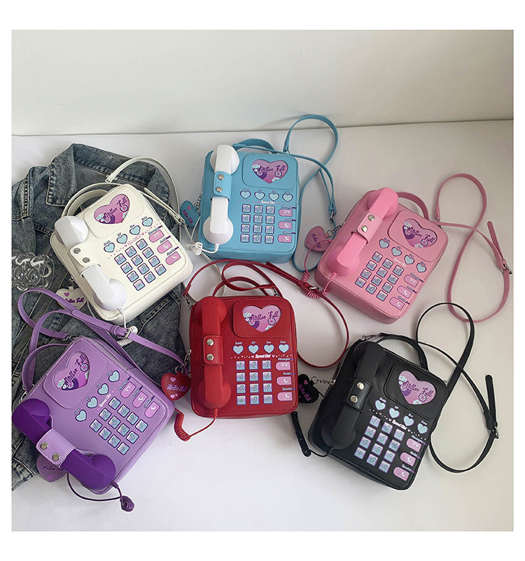 Red Sweet Girl Creative Crossbody Bag with Telephone Design, PU Material, Lightweight and Unique