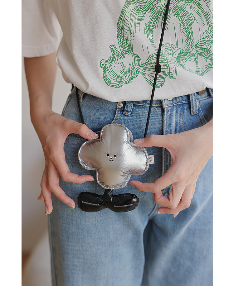 Silver Mini Crossbody Coin Purse & Earphone Pouch - Adorable Floral Design, Small Bag for Lipsticks, Lightweight Travel Essentials