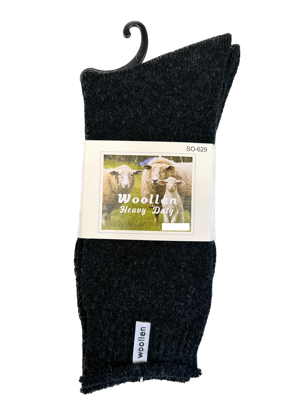 1 Pair Premium Mens Wool Heavy Duty Thick Work Socks Cushion Woolen - Black - 7-11