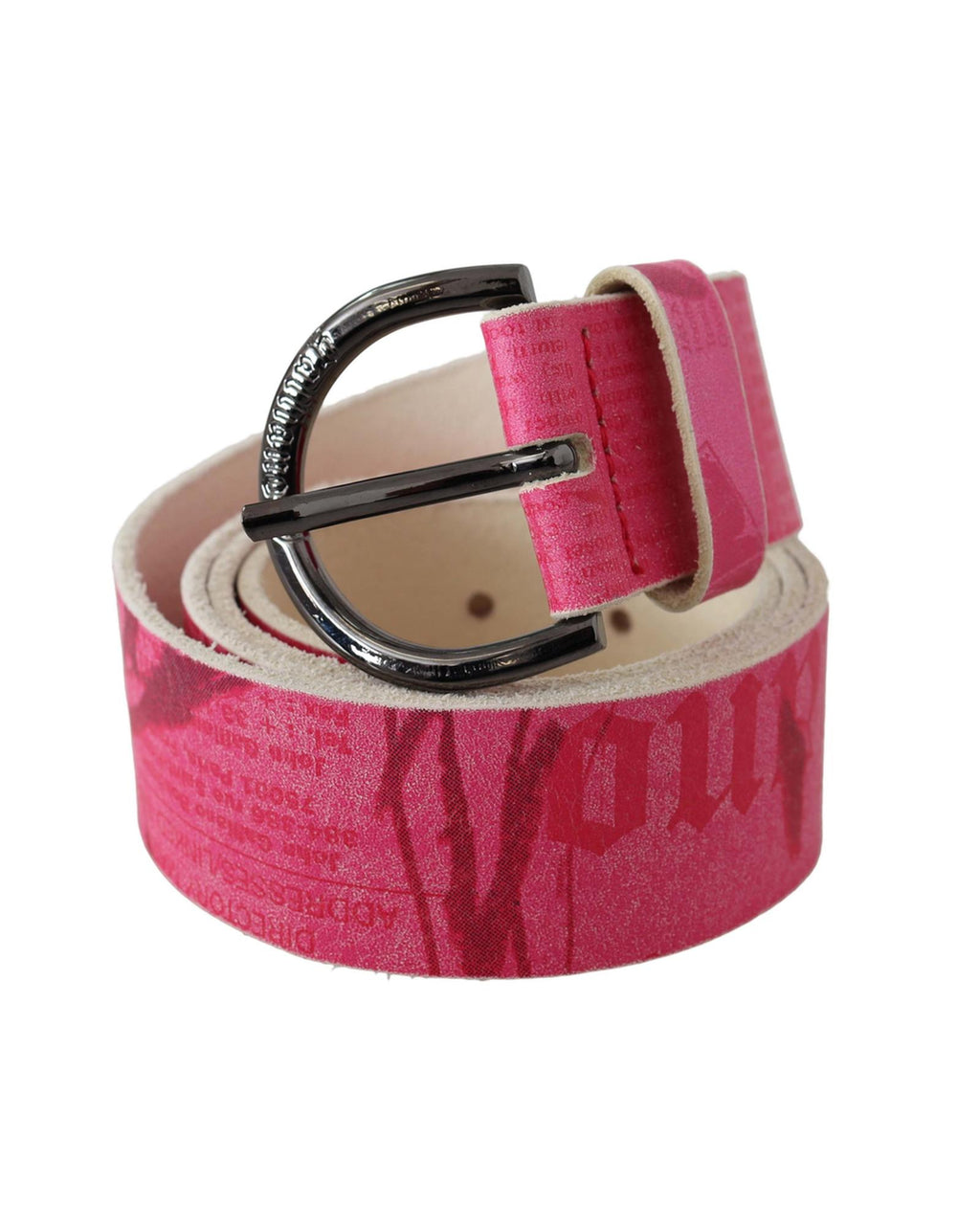 100% Authentic GALLIANO Pink Leather Fashion Belt with Black-tone Hardware 90 cm Women