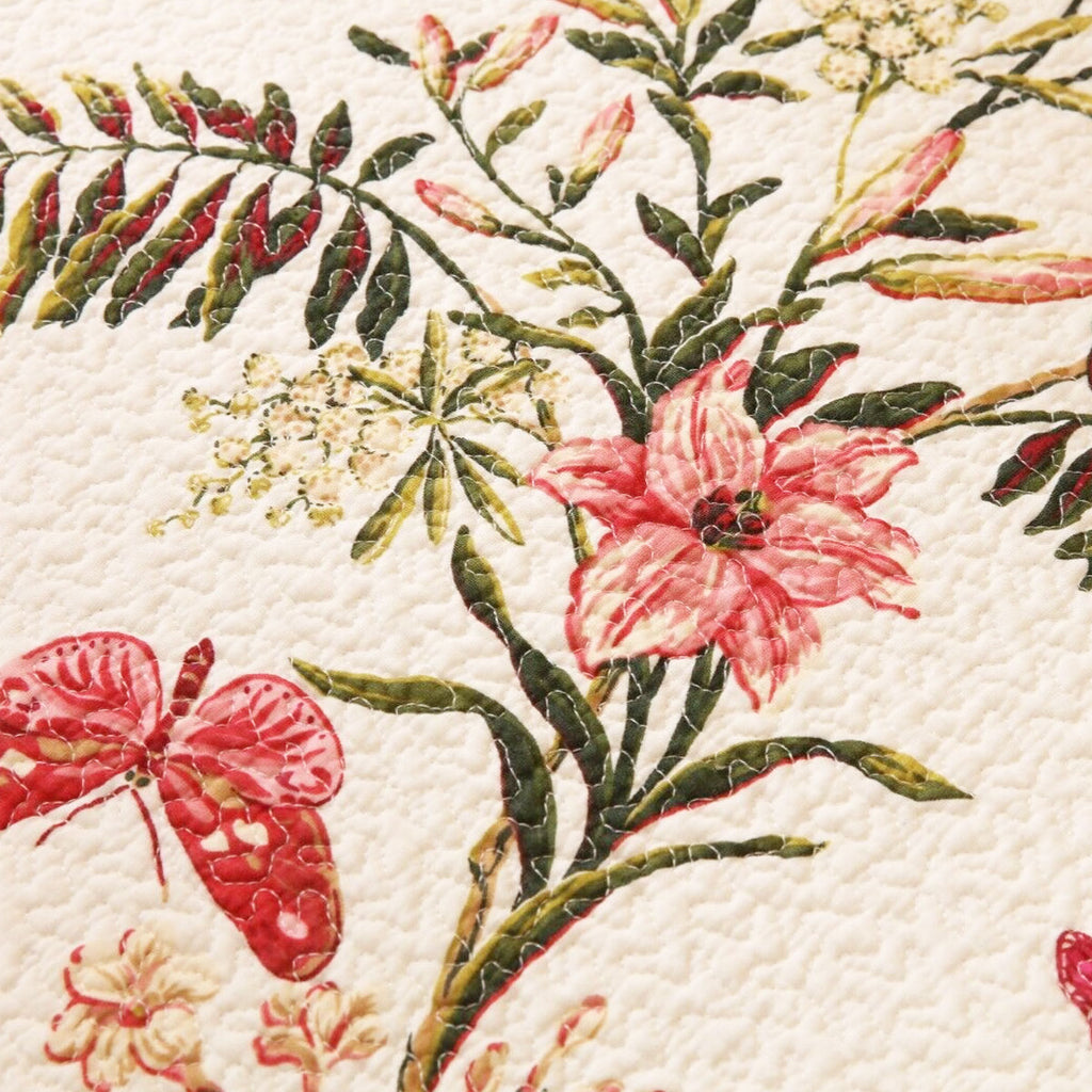Bring the beauty of blossoms into your home with the 100% Cotton Lightly Quilted Coverlet Set Granada Cream Queen. It's more than bedding - it's an invitation to dream amidst petals and serenity. It features quilted floral pattern reminiscent of a serene garden in cream, brown, rose, pink, burgundy, green, and olive colour tones.