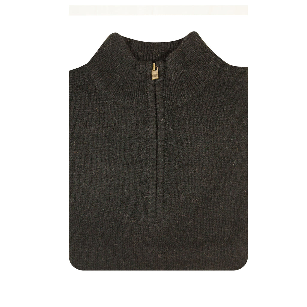 100% SHETLAND WOOL Half Zip Up Knit JUMPER Pullover Mens Sweater Knitted - Plain Black - 5XL