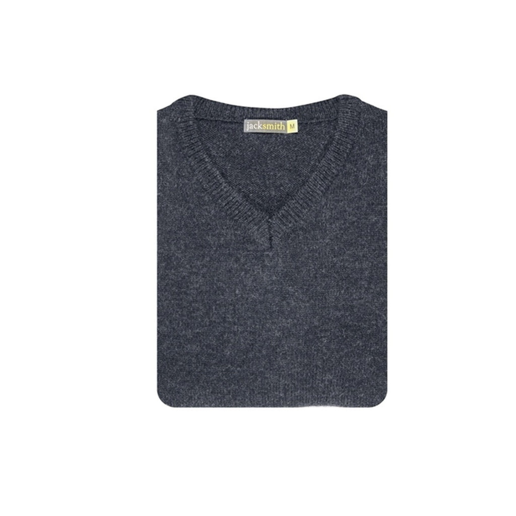 100% Shetland Wool V Neck Knit Jumper Pullover Mens Sweater Knitted - Navy (45) - 3XL
