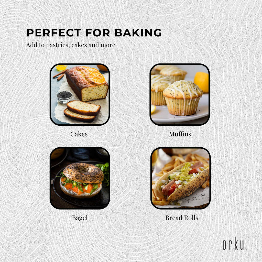 Poppy Seeds have been traditionally used in food and baking for thousands of years. It has a nutty flavour and are commonly used in pastries, breads, cakes, muffins, rolls, curries etc.