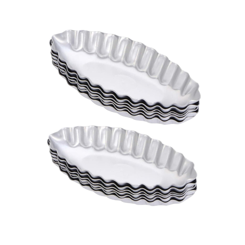 This set of 10 sailing boat-shaped pie moulds is ideal for baking tarts, mini cakes, and nut snacks at home.Crafted from durable aluminium alloy, each tray measures approximately 11.8cm × 5.6cm with a height of 1.8cm.The wavy edge design helps shape your pastry evenly while ensuring easy release.Suitable for oven use, these moulds are perfect for DIY baking enthusiasts or for preparing beautiful bite-sized treats for any occasion.