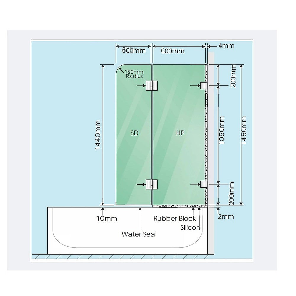 - Slimline 2mm rear wall reduces silicone gap between wall and glass panel