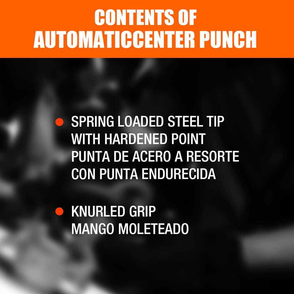 - Automatic spring loads then releases at top of cycle with force to create center punch (No Hammer Needed).