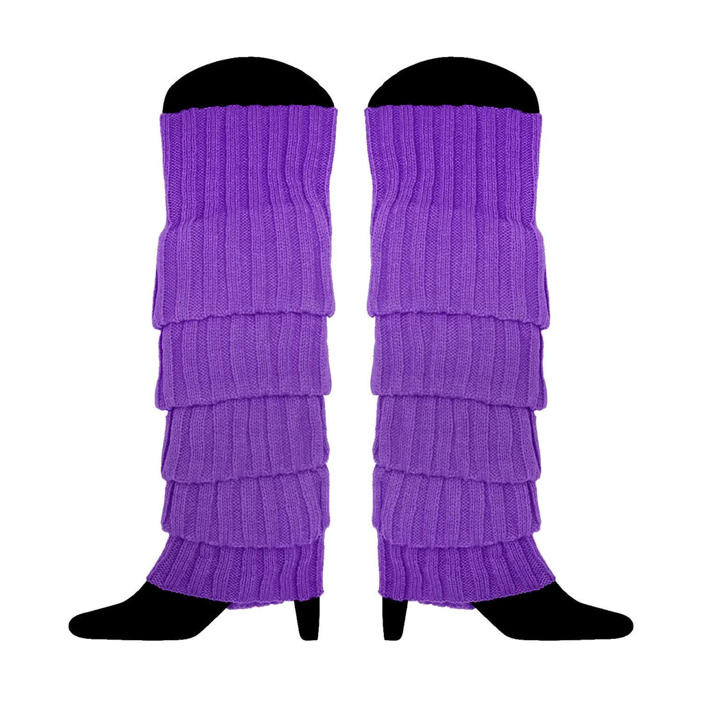 12x LEG WARMERS Knitted Womens Costume Neon Dance Party Knit 80s BULK - Purple