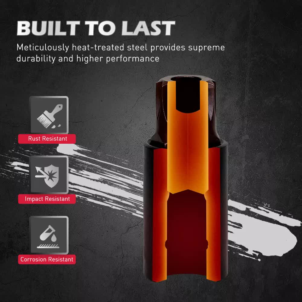 DURABLE DESIGN - Drop-forged and heat-treated S2 steel bits with hardened Cr-V steel sockets, ensuring long-lasting performance. Ideal for high-torque applications in garages, workshops, and repair tasks.