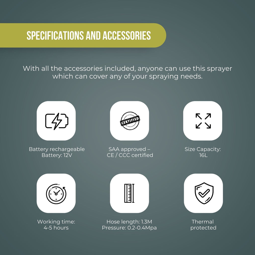 How many times have you had your hands tired from pressing that nozzle to spray in your garden? This 16L Electric Backpack Garden Sprayer turns the laborious task of weeding or any chemical spraying into effortless one handed fun.