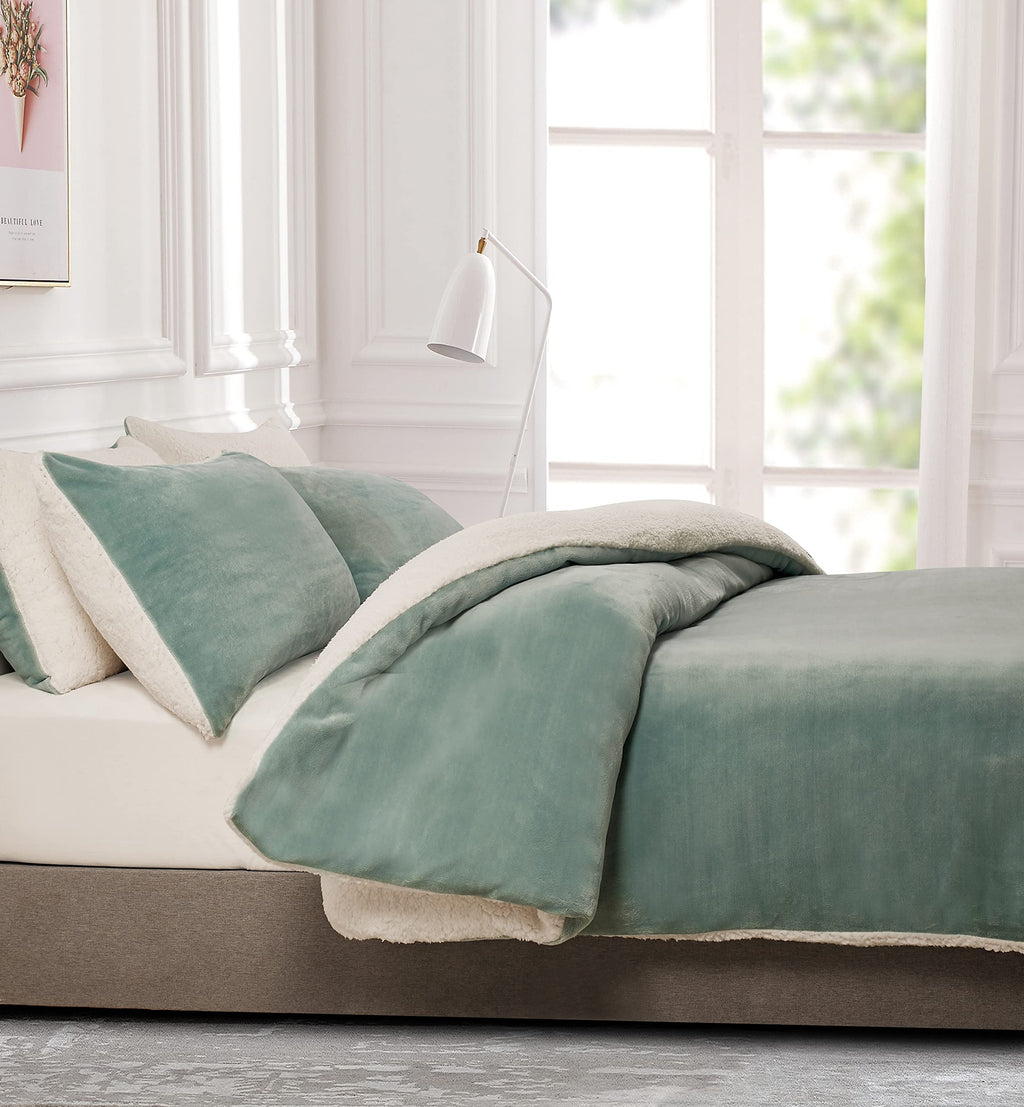 2-in-1 Teddy Sherpa Quilt Cover Set (Sage Green, Super King)