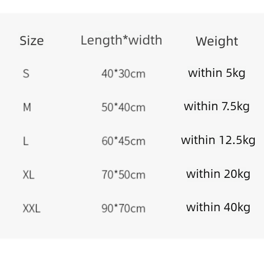 | Size (L*W) | Approximate Weight | Recommended Pet Weight |