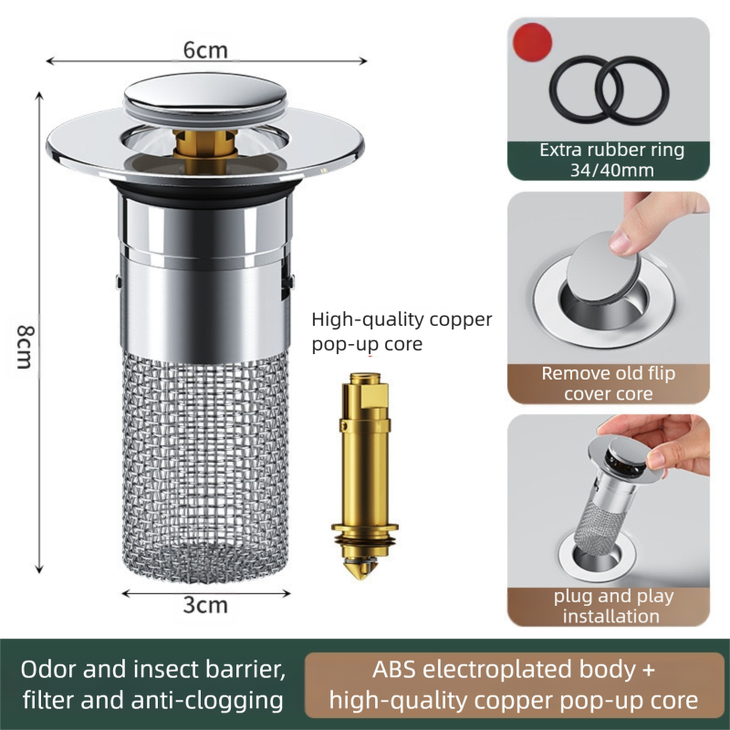 Upgrade your bathroom sink or basin with this 2-pack of advanced pop-up drain stoppers. Engineered to solve common drainage issues, the design features a quick-press mechanism for easy water sealing and fast draining, while providing powerful anti-odor and anti-clog protection. Installation is tool-free and simple—just plug it in to instantly replace your old stopper core.