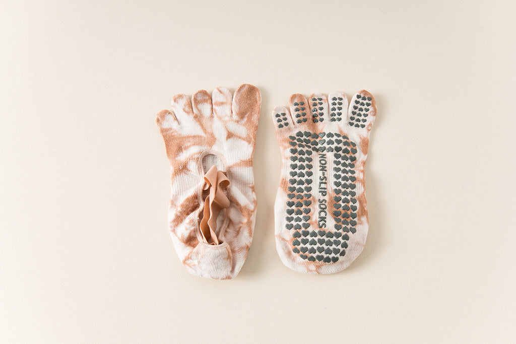 2 Pairs Pink Tie-Dye Non-Slip Yoga Socks for Women - Five-Toe Cotton Blend Socks for Pilates and Indoor Sports