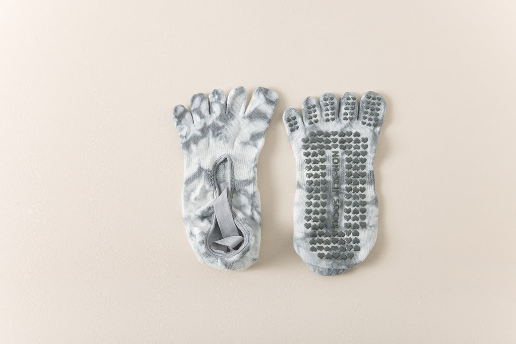 Enhance your yoga or Pilates practice with these non-slip five-toe socks for women. Designed with a grippy sole featuring a heart-shaped pattern, these socks provide excellent traction to prevent slipping during indoor workouts. Made from a breathable cotton blend, they offer sweat absorption and comfort, while the five-toe design promotes natural foot movement and alignment.