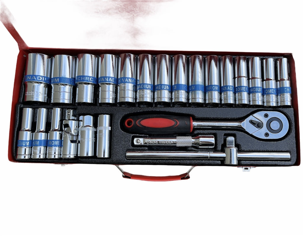 - 24pcs Ratchet Socket Wrench Set Screwdriver Bits Extension Hex Chrome Vanadium