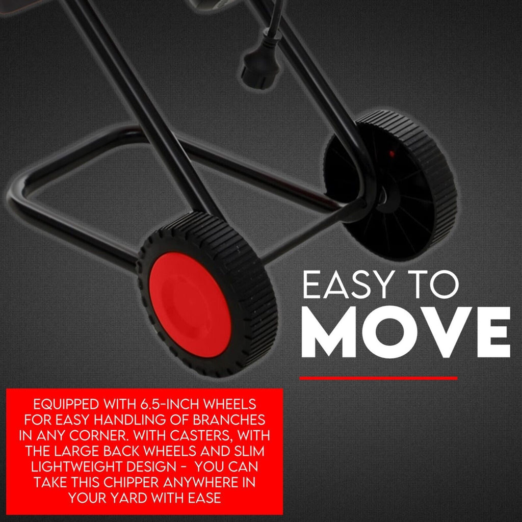 The electric shredder features a robust construction with a polypropylene housing that resists rust and dents, while the inclusion of two 6-inch wheels ensures easy transportation and portability.