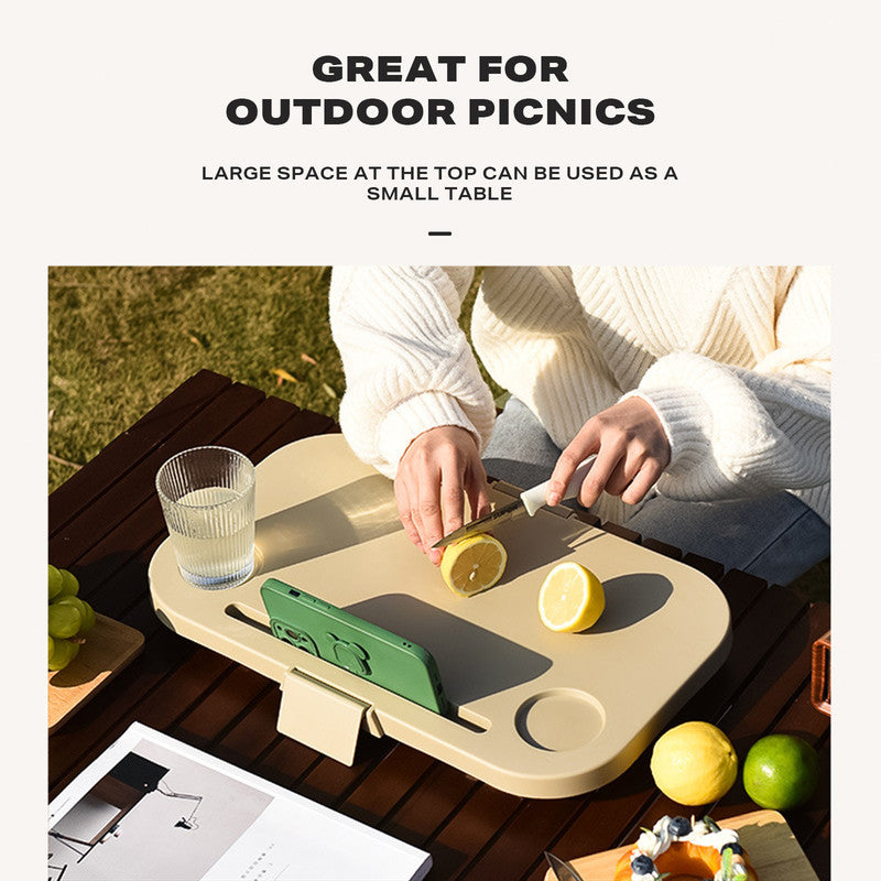 MULTI-USE STORAGE COVER : The cover comes with a metal frame, which can be used as a small table. The top space is large, which can be used as a cutting board. It comes with a thoughtful phone holder and a stable concave water cup position.