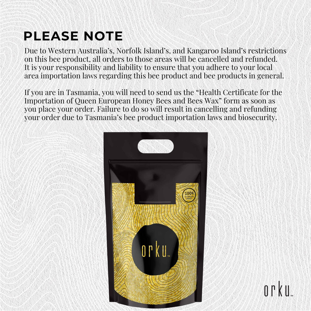 Due to Western Australia’s, Norfolk Island’s, and Kangaroo Island’s restrictions on this bee product, all orders to those areas will be cancelled and refunded.