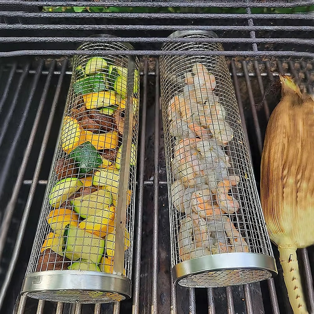 Our BBQ basket features a safe, rounded edge design to protect your hands from scratches. Included hooks allow you to adjust the hot rolling basket while grilling, effectively preventing scalding. With no assembly required, the wide opening makes it easy to load and unload food. Perfect for pre-loading with food for picnics, tailgating, and camping, this portable grill basket is a must-have for outdoor cooking.