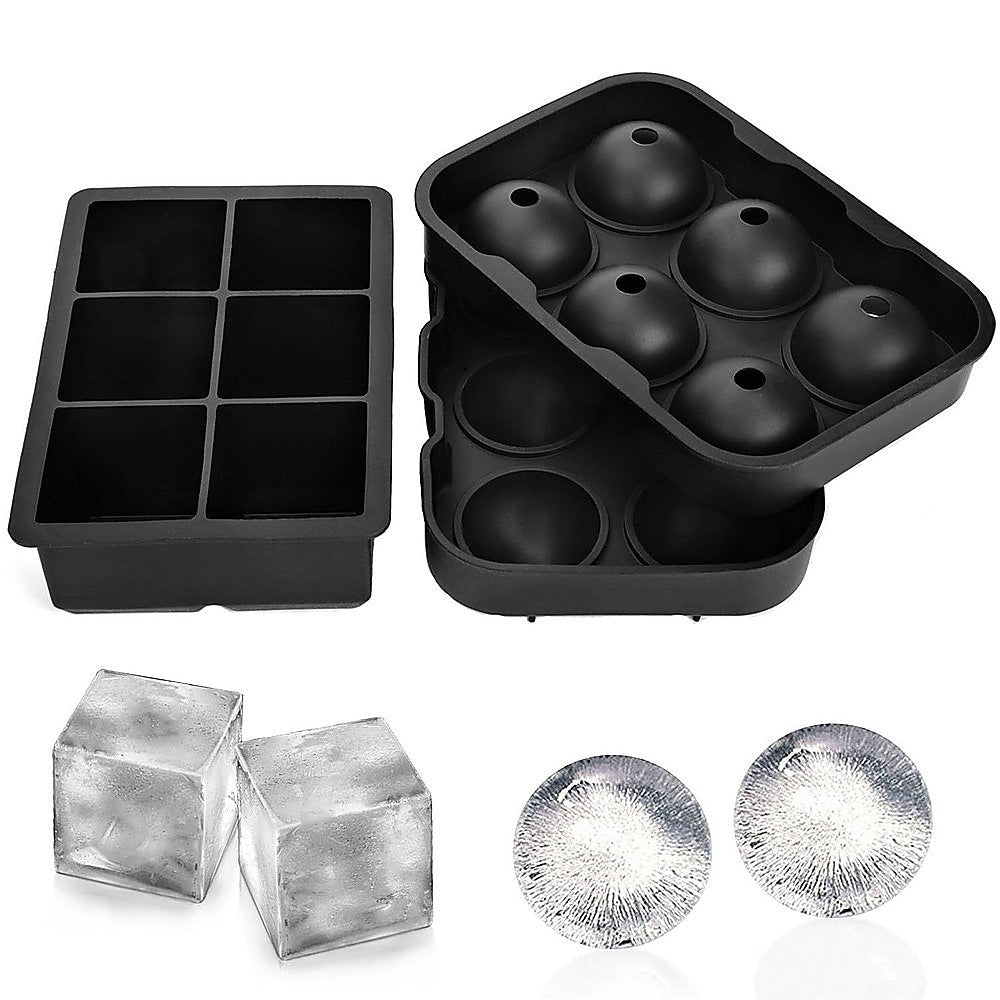 The ice ball tray creates six large 4.3cm ice balls, perfect for whiskey, cocktails, tea, coffee, milk, champagne, and brandy. The square ice cube tray makes six giant 5cm cubes, ideal for Scotch whiskey, bourbon, blended whiskey, and cooling cocktail glasses.