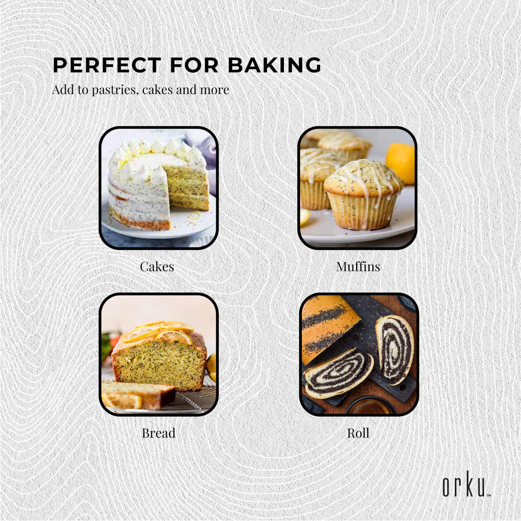 Poppy Seeds have been traditionally used in food and baking for thousands of years. It has a nutty flavour and are commonly used in pastries, breads, cakes, muffins, rolls, curries etc.