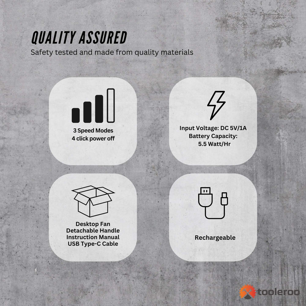 3-Speed USB 20cm Desktop Fan – Quiet Portable Lightweight Rechargeable Cooler