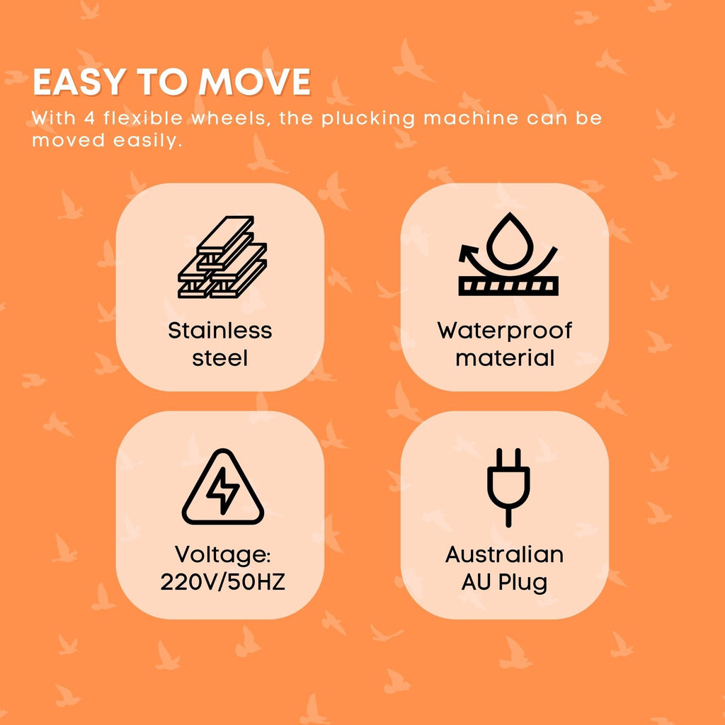 This compact 300mm stainless steel tub, this chicken plucker machine makes de-feathering chickens easy and efficient.
