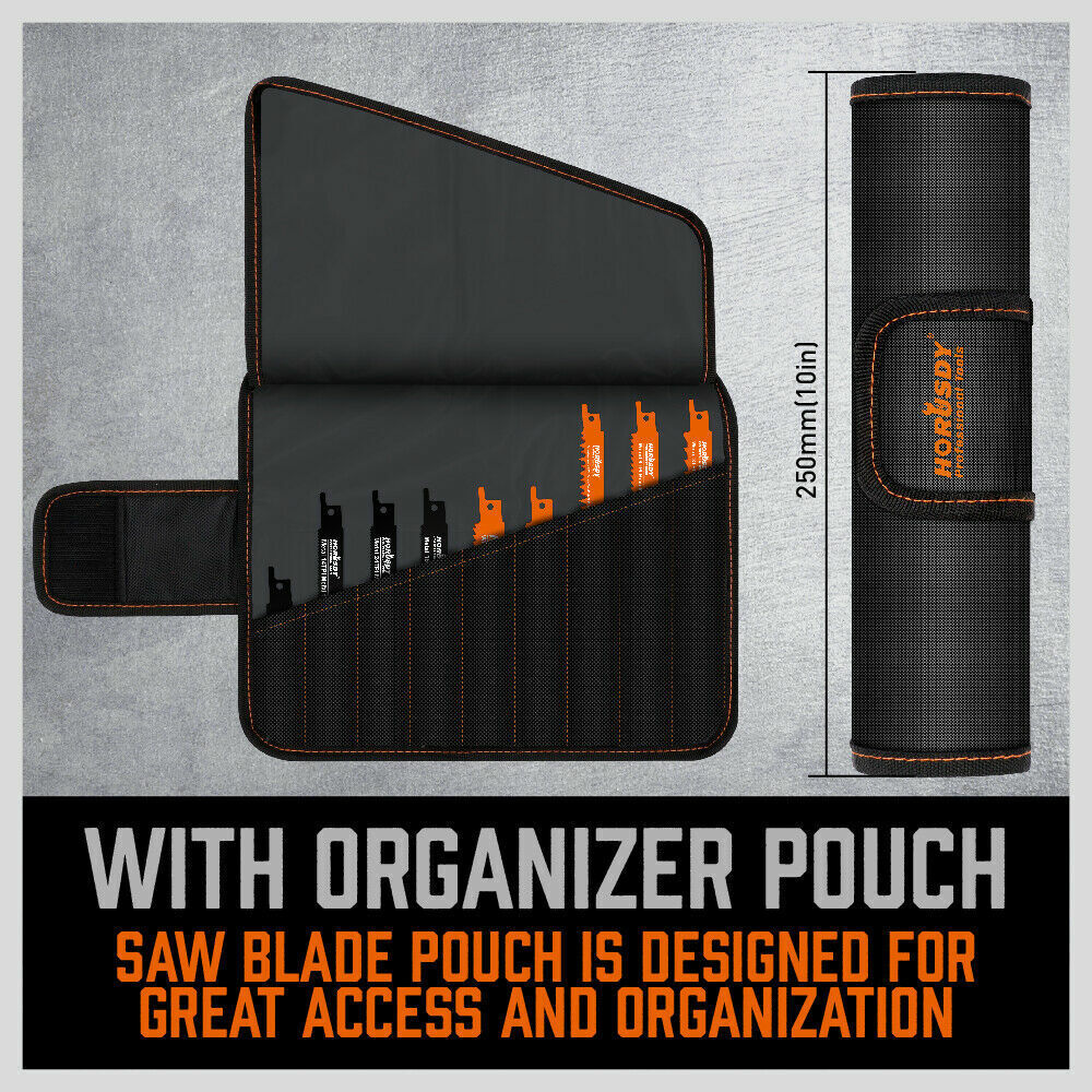Upgrade your cutting versatility with the HORUSDY 34-Piece Reciprocating Saw Blade Set. This set includes a variety of high-quality saw blades designed for common applications, making it perfect for metal, plastic, wood, and drywall cutting. The set features orange wood pruning blades made from high-speed carbon steel for faster wood cutting, as well as black metal blades constructed from bi-material for toughness and durability. Compatible with all major reciprocating saw brands, this set comes in a convenient pouch for easy storage and transportation.