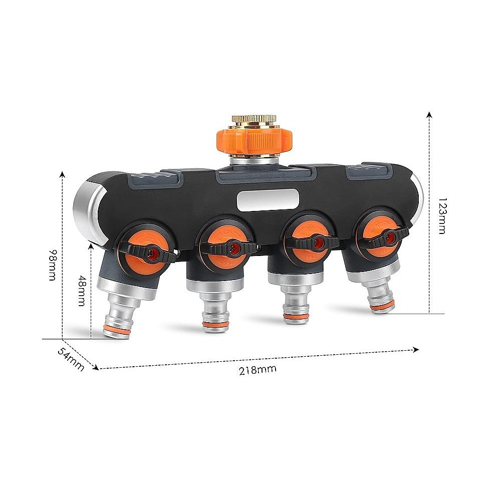 Constructed from high-quality TPR+ABS (thermoplastic rubber and acrylonitrile butadiene styrene) material with an aluminium alloy nut, our four-way water distributor is built tough for Australian conditions, ensuring durability and a lengthy service life. Engineered to prevent leaks and maintain high water pressure when sealed, it's a reliable choice for your outdoor watering needs.