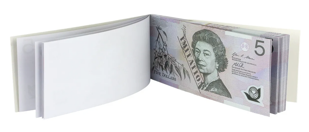Great souvenir Australian Dollar currency note pad. All notes are imitation of course :)