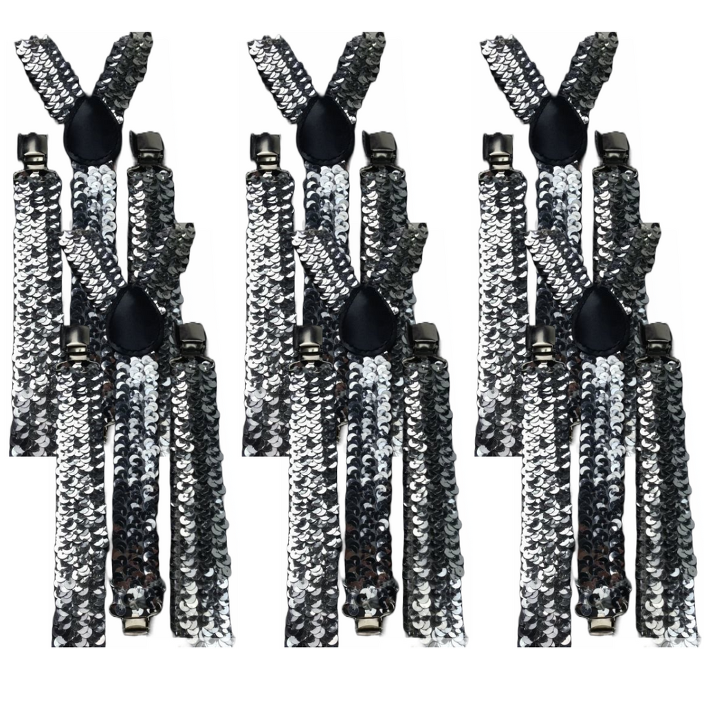 6x Mens Suspenders Braces Adjustable Strong Clip On Elastic Formal Wedding BULK - Silver (Sequin)