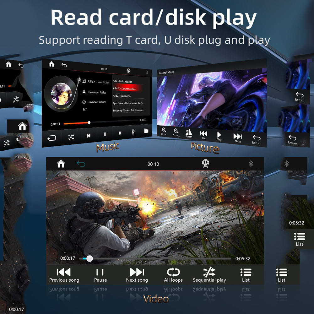 【USB, Bluetooth】This car multimedia monitor can support USB disk music, video playback. It also can supprot Bluetooth music and handsfree call.