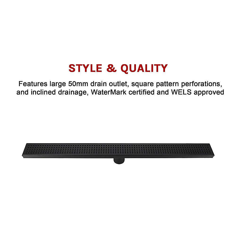 800mm Bathroom Shower Black Grate Drain w/Centre outlet Floor Waste
