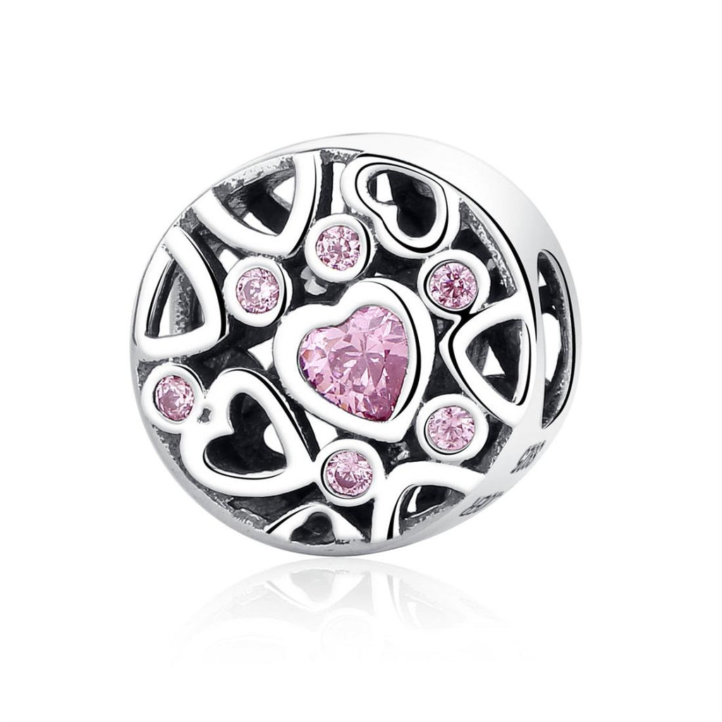 925 Sterling Silver Geometric Heart Shaped Hollow Beads For Diy Jewelry