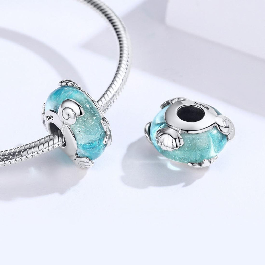 925 Sterling Silver Ocean Star Pendant Bracelet With Blue Glass Bead