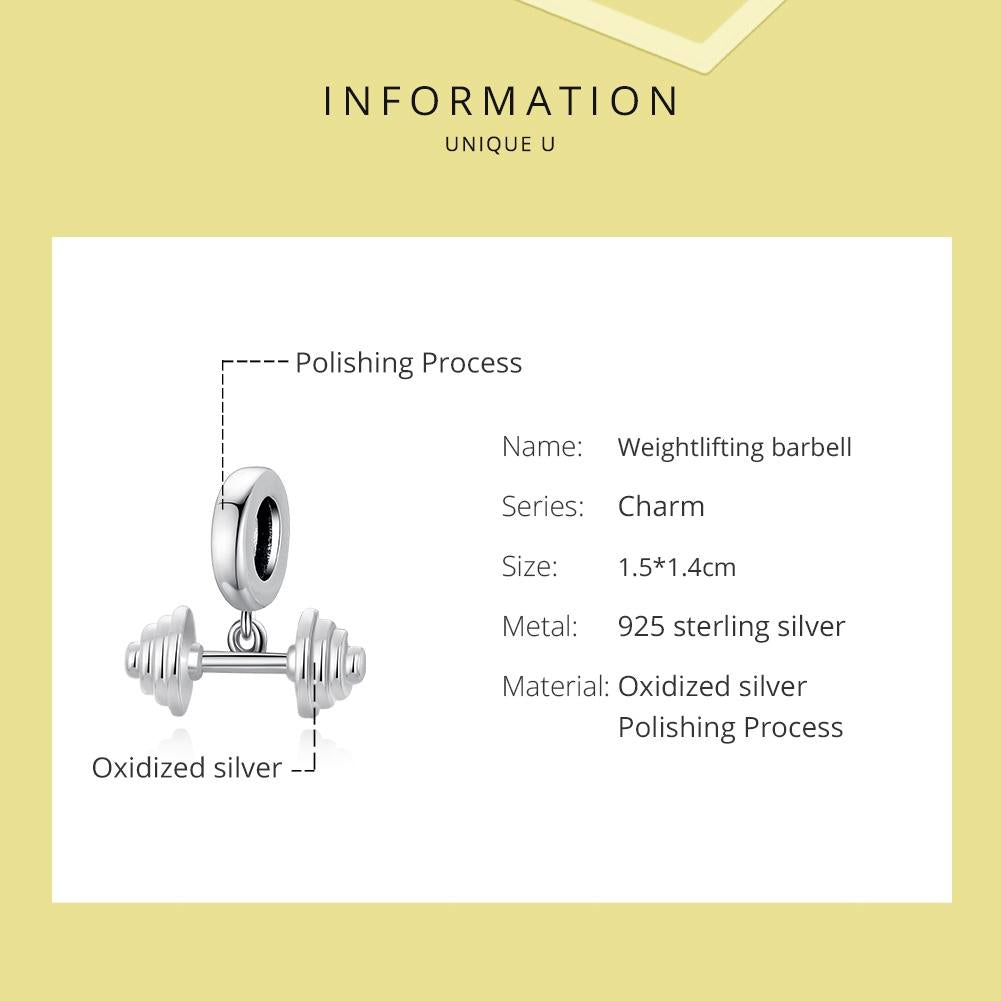 925 Sterling Silver Weightlifting Barbell Pendant For Bracelets / Necklaces