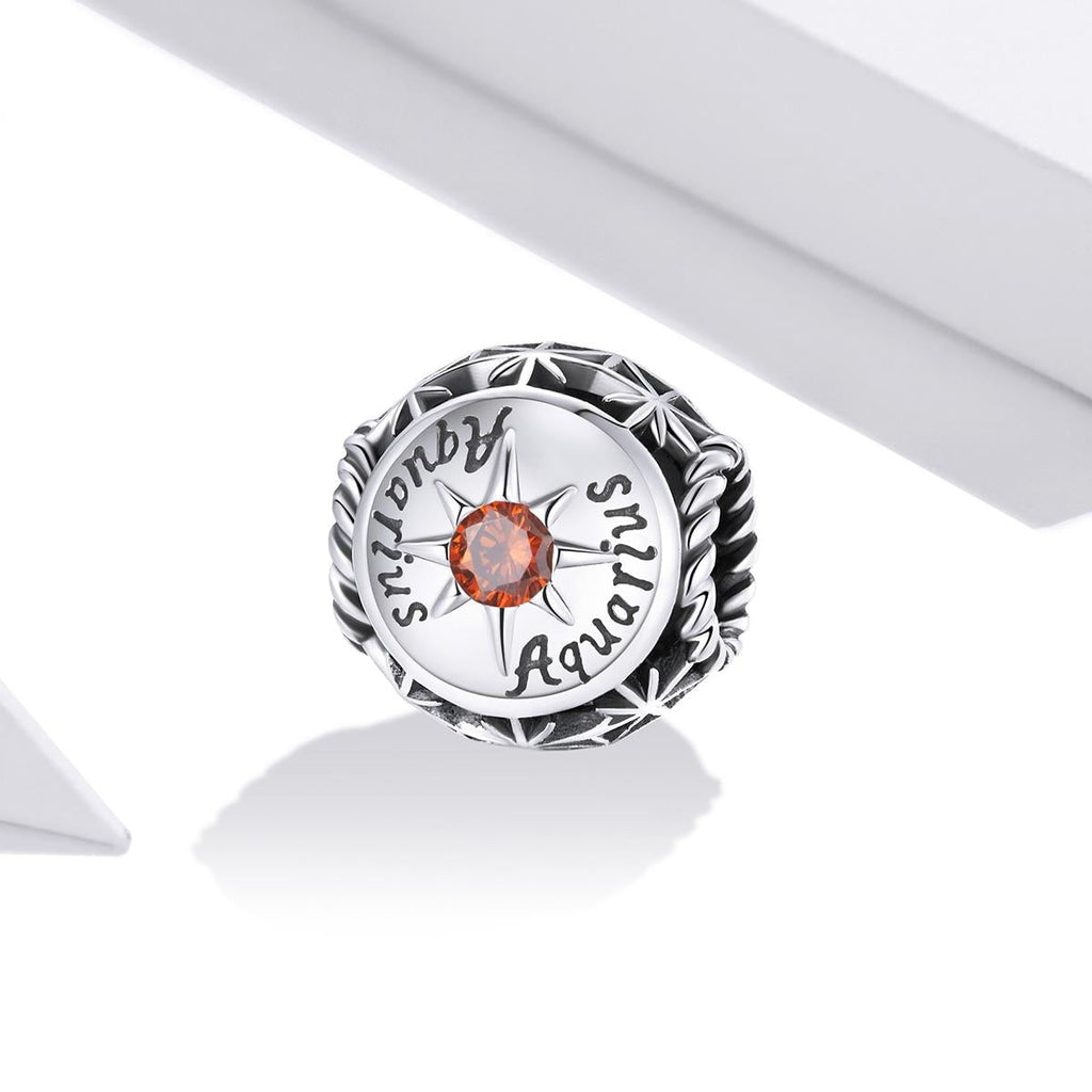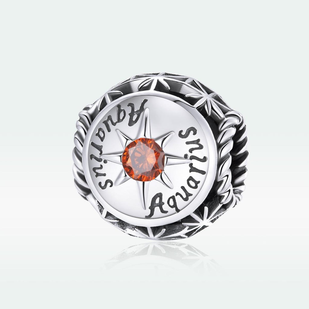 • 1 x 925 Sterling Silver Zodiac Zircon Bead Bracelet / Necklace Set Diy Aquarius Style - Aquarius
