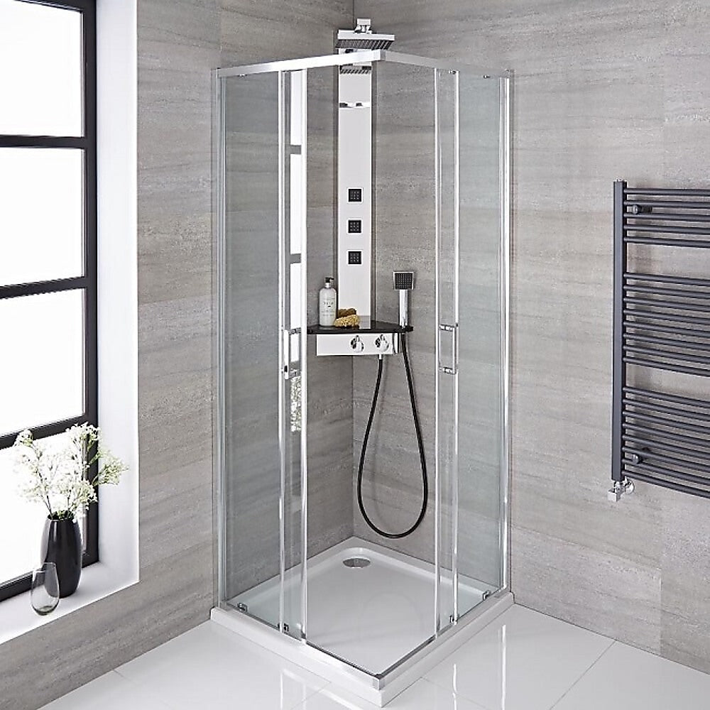 This refined sliding double-door enclosure not only captivates with its beauty but is also engineered for enduring quality. Backed by a waterproof guarantee, it features magnetic seals and high-grade chrome hardware, ensuring resilience against rust due to its stainless steel components. The accompanying side panel offers a universal fit, allowing for versatile right or left-hand installation with a 100mm wall adjustment.